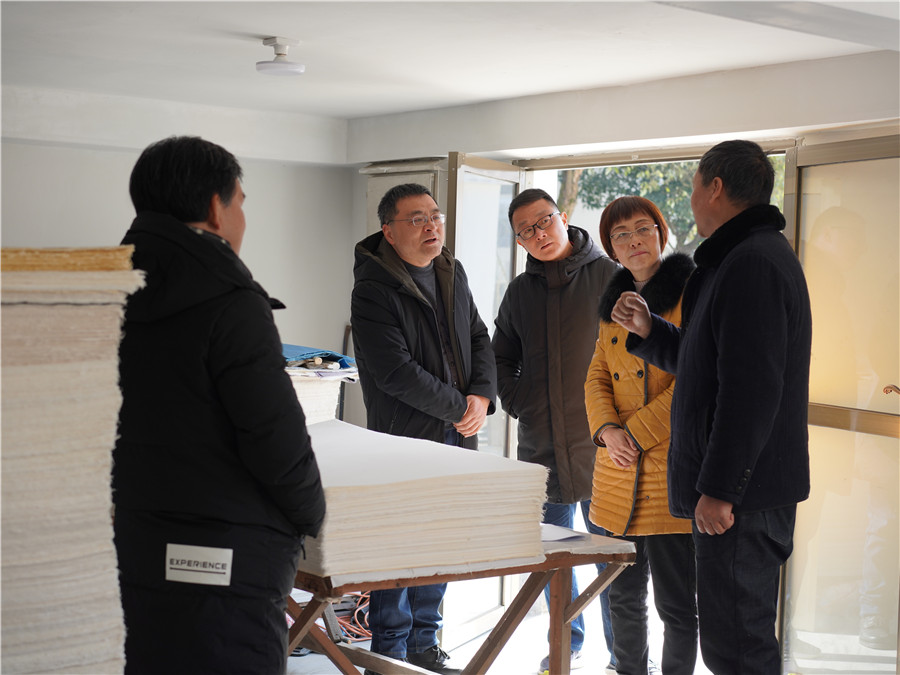 2021年元月12日,黃山市市原政協(xié)副主席,第一屆非遺研究會(huì)主席胡寧帶隊(duì)到公司調(diào)研徽州楮皮紙制作技藝。剛剛成立的市非遺研究會(huì)第一次調(diào)研活動(dòng)安排到我公司是對(duì)我公司的關(guān)心,也是對(duì)我公非遺傳承工作的肯定。