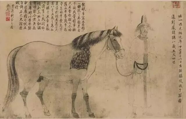 澄心堂紙不僅用于書(shū)法,也用于繪畫(huà)。據(jù)記載北宋畫(huà)家李公麟作畫(huà)不喜歡設(shè)色,多用白描,用的也是澄心堂紙。根據(jù)明代大收藏家項(xiàng)元汴考證,李公麟的傳世名作《五馬圖》用的就是澄心堂紙。
