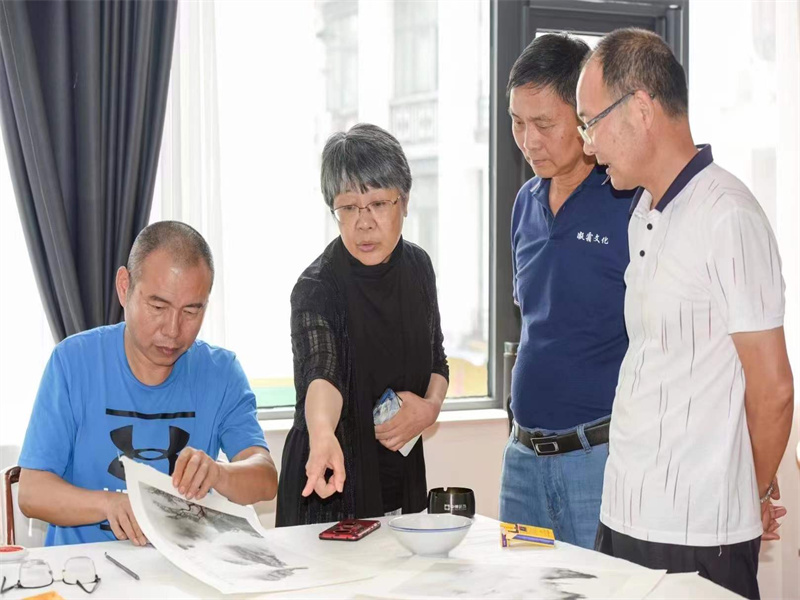 知名畫(huà)家汪家芳老師一行來(lái)公司指導(dǎo)并試筆